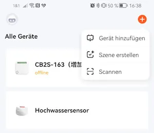 In der App klickst du oben rechts auf das orange Plus und wählst aus dem Kontextmenü „Gerät hinzufügen“.