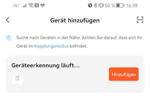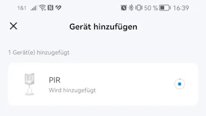 Es wird nun die Gerätesuche gestartet. Wenn du zu lange gewartet hast, dann musst du deinen PIR Sensor erneut in den Kopplungsmodus versetzen und den Taster über dem Batteriefach für 5 Sekunden drücken.