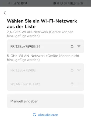 Wenn das Gerät erkannt und du die Schaltfläche „Hinzufügen“ geklickt hast, musst du ein 2,4 GHz Netzwerk auswählen.
