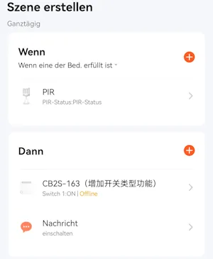In der App Tuya Smart kannst du Szenen erstellen, mit welchen du die Geräte von Tuya untereinander intelligent verknüpfen kannst. Du kannst quasi bei einer Bewegungserkennung ein anderes Gerät mit einem smarten Switch aktivieren und deaktivieren.