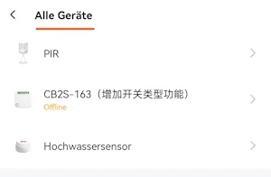 Es werden nun alle Geräte aufgelistet welche etwas Schalten / Steuern können. In meinem Fall ist es der Smarte Switch welcher derzeit nicht mit Strom verbunden ist. Jedoch kann dieser trotzdem verwendet werden.