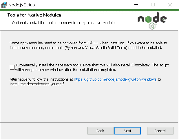 Für die eingesetzte Erweiterung PyMakr benötigen wir Node.JS auf dem Computer. Dieses installieren wie vor Visual Studio Code. Natürlich könnten wir das auch danach installieren aber somit ersparen wir uns ein paar Fehlermeldungen beim installieren der Erweiterung.