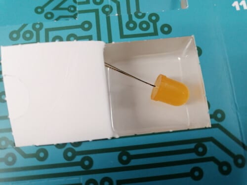 Wenn wir nun das Türchen öffnen, finden wir eine orange farbige LED inkl. Vorwiderstand.