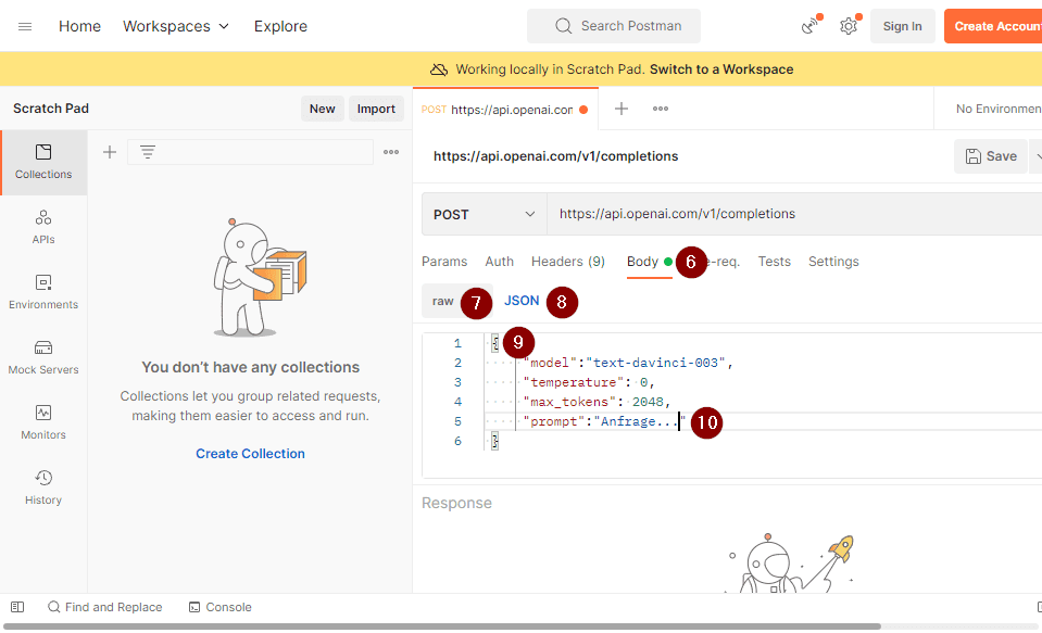 Erzeugen eines Requests per Postman an ChatGPT
