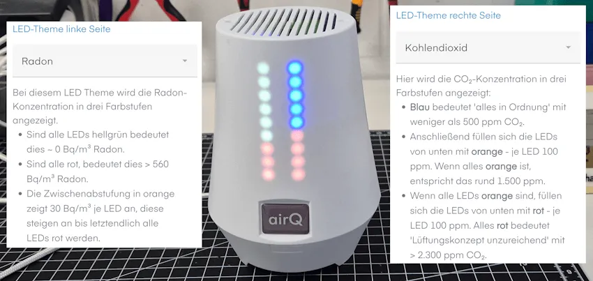 Konfiguration der LEDs für Radon und Kohlenmonoxid Anzeige