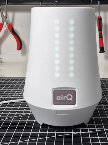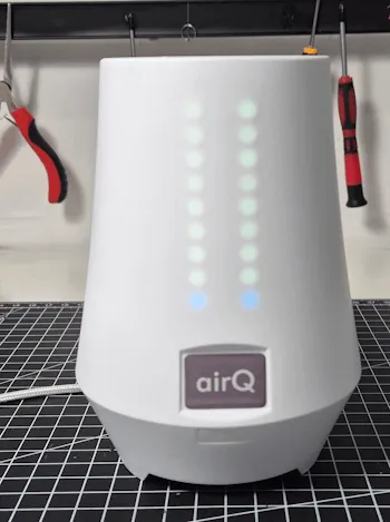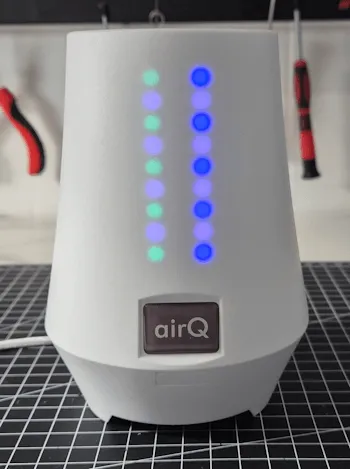 Mehrfarbige LEDs im Inneren des Gehäuses beginnen zu leuchten. Diese sind nicht nur ein hübsches visuelles Detail, sondern zeigen aktiv Messwerte der wichtigsten Sensoren an – z. B. bei schlechter Luftqualität, hoher Luftfeuchte oder erhöhter VOC-Konzentration.
