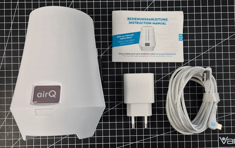 Im Karton des air-Q Radon findest du alles, was du für einen schnellen Start brauchst: