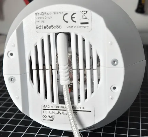 Ein kleiner, aber nicht unwichtiger Punkt: Wenn das USB-C-Kabel eingesteckt ist, verdeckt es den Reset-Taster am air-Q Radon.