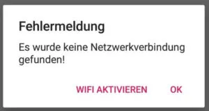 Wenn kein WLAN aktiviert ist, wird also nun ein Dialog angezeigt. Nun muss der Benutzer die App verlassen und manuell das WLAN aktivieren.