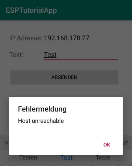 Bei mit klappt es nicht: ich habe Android 8.1 auf meinem Smartphone. Die App scheint fehlerfrei zu senden, aber es kommt beim ESP nicht an. Der gleiche Text mit dem Browser vom Handy gesendet kommt auf dem ESP an. Von jedem beliebigen Notebook im WLAN kommt die Message zum ESP, nur nicht aus der APP direkt. Die Einstellungen im Manifest habe ich alle gemacht inkl. der zusätzlichen XML, in der ich die IP-Adresse eingetragen habe.