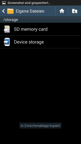 Sie werden nun nach einem Speicher gefragt. Da in dem Gerät, welches ich verwende, eine zusätzliche Speicherkarte installiert ist, habe ich 2 Speicherplätze.