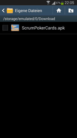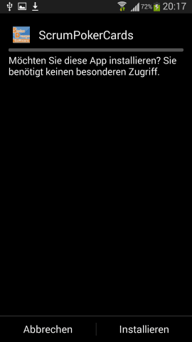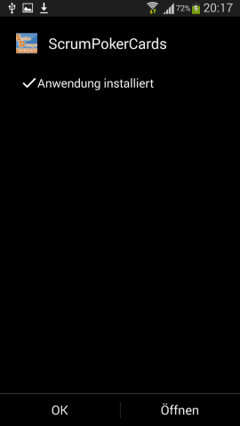 Durch das Anwählen der Datei „ScrumPokerCards.apk“ wird der Installationsvorgang gestartet.