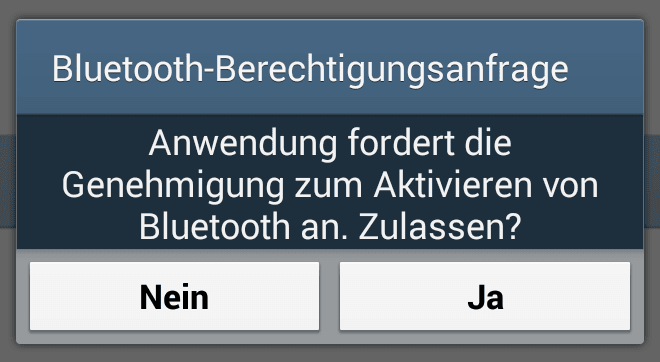 Für die Verwendung des Bluetooth Adapters im Android-Gerät müssen die Berechtigungen