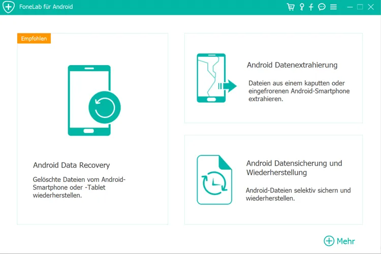 Schritt 1: Öffne die Software auf deinem Computer. Dann wähle die Option „Android Datenrettung“ aus. Anschließend schließ dein Android-Handy an den Computer an.