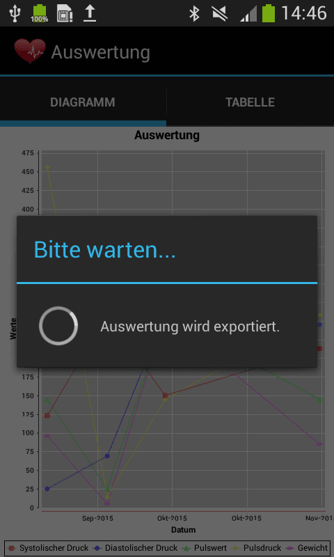 Manche Operationen, wie zbsp. das Laden von Daten aus der Datenbank, oder das Erstellen von Diagrammen können eine gewisse Zeit benötigen. Für dieses Problem gibt es einen einfachen ProgressDialog welcher 2 Zustände haben kann.