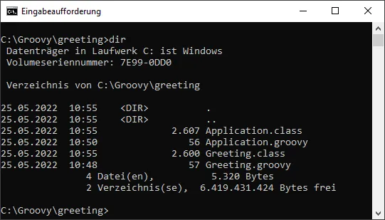 Wir können nun mit dem Befehl „groovyc *.groovy“ alle Dateien kompilieren.