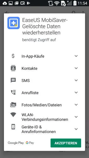 Diese App kann als kostenfreie Version über den Google PlayStore installiert werden oder aber über die Seite des Herstellers EaseUS Android-App zur Datenrettung.