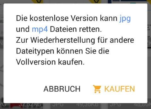 Die App kann jedoch in der kostenfreien Version keine PNG Dateien wiederherstellen, somit ist man auf die bereits genannten Formate eingeschränkt.