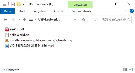 Zunächst prüfen wir was die kostenfreie Trial-Version von Remo Data Recovery leistet. Dazu kopieren wir die Testdateien auf den USB-Stick und löschen diese anschließend.