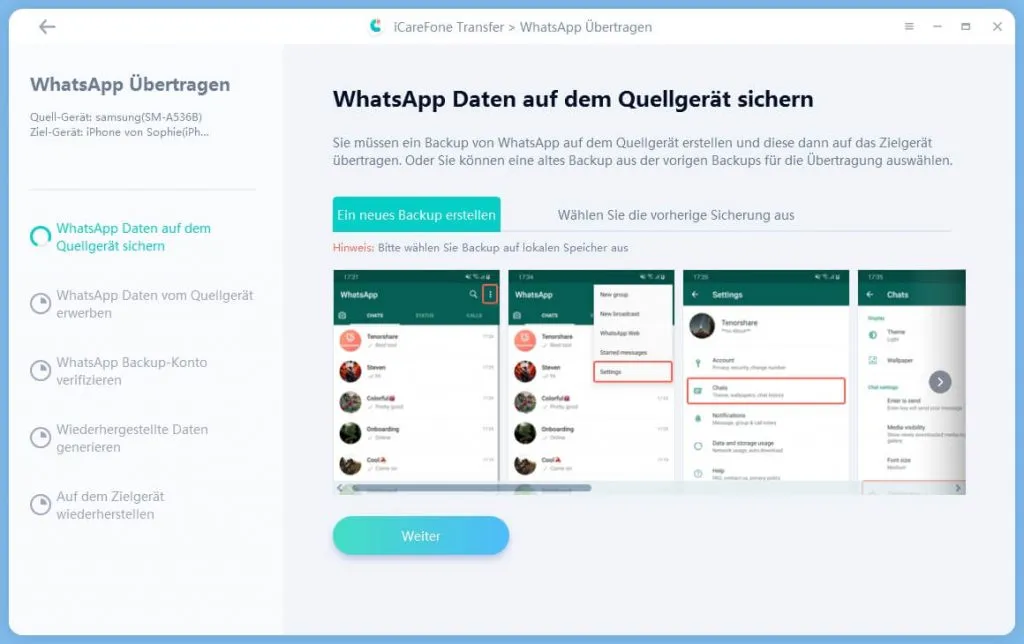 Exportieren eines WhatsApp Chatverlaufes mit Tenorshare iCareFone Transfer