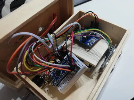 Der gesamte Aufbau soll später in ein kleines Gehäuse passen, daher sieht es etwas nach Spagetti aus, wenn man den Deckel öffnet 🙂