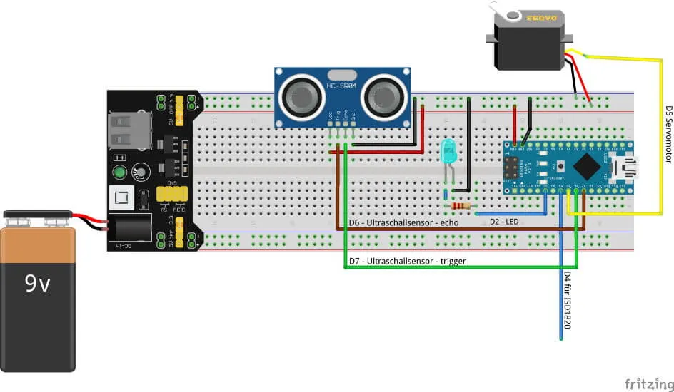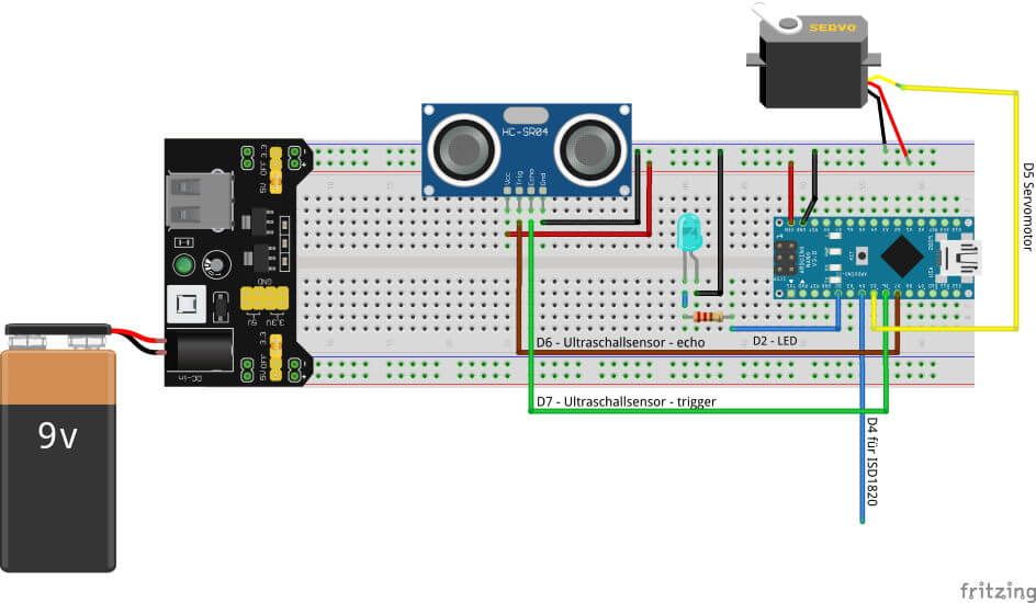 Der gesamte Aufbau soll später in ein kleines Gehäuse passen, daher sieht es etwas nach Spagetti aus, wenn man den Deckel öffnet 🙂