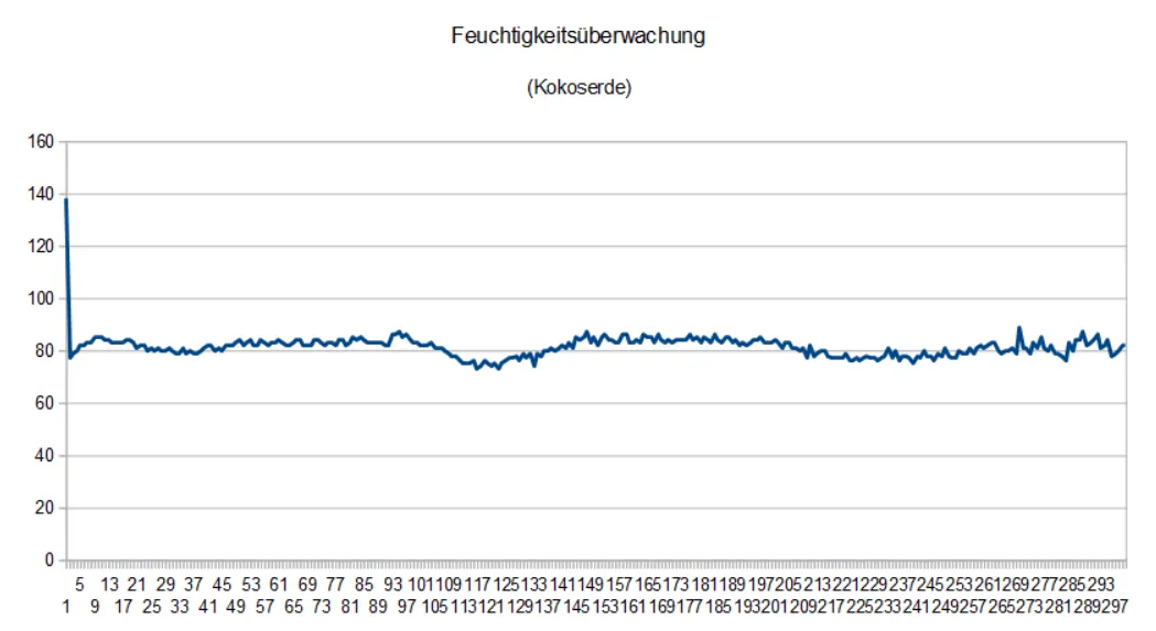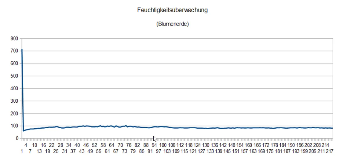 Der erste Ausschlag im Diagramm ist der Zeitpunkt, wo ich die Pflanze initial gegossen habe.