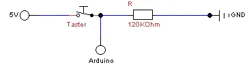Da man für die Schaltung einen Widerstand benötigt, welcher das Potential gegen null zieht, benötigen wir einen zwischen 10 KOhm und 120 KOhm.