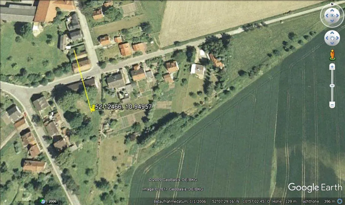 In der Grafik ist der Abstand eingezeichnet, welcher von der echten Position abweicht (gelbe Linie, ca. 69,45 m).
