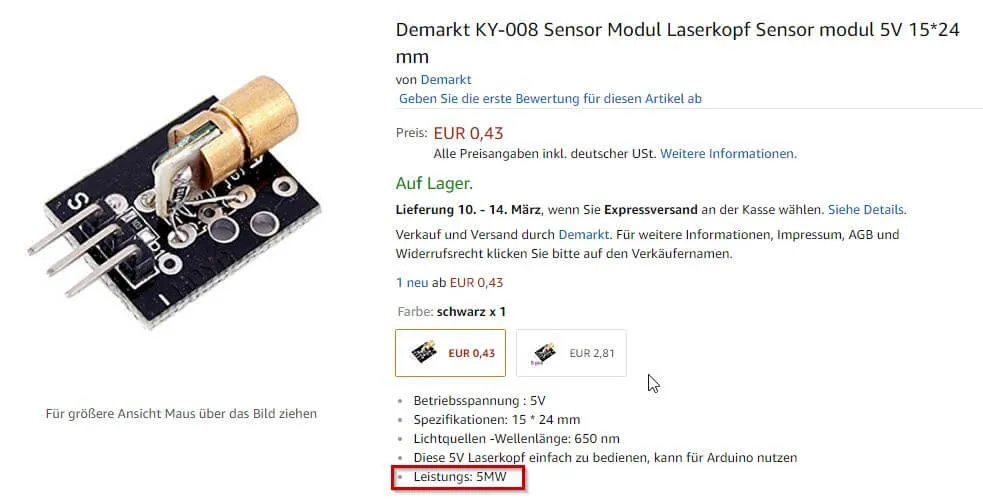 Der Laserpointer KY – 008 kann über ebay.de*, amazon.de* oder wish.com bezogen werden. Hier darf man sich jedoch nicht von der teils, irreführenden Bezeichnung der Laserleistung verleiten lassen.
