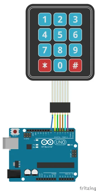 Keypad myKeypad = Keypad(makeKeymap(KEYS), ROW_PINS, COL_PINS, ROWS, COLS);
