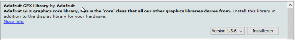 Zusätzlich wird die GFX Bibliothek von Adafruit benötigt.