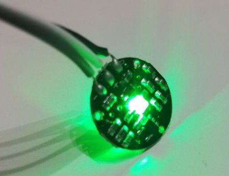 Die Wellenlänge bestimmt die Farbe, die LED leuchtet in mit einer Wellenlänge von 309 nm somit sendet diese im ultravioletten Bereich. Das grüne Licht, welches vom Sensor ausgeht, wird benötigt, um die Messung durchzuführen. Es ist wichtig, dass kein Umgebungslicht auf die zumessende Stelle am Körper trifft, dieses würde die Messergebnisse verfälschen.