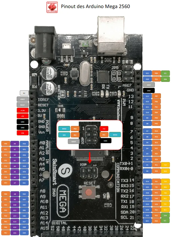 In diesem kurzen Beitrag möchte ich dir das Pinout des Arduino Mega 2560 R3 vorstellen.