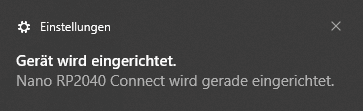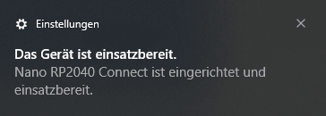 Wenn du den Mikrocontroller zum ersten Mal mit dem PC verbindest, dann wird dieser eingerichtet, du erhältst 2 Pop-up Nachrichten von Windows, das erste zeigt dir das, dass Gerät derzeit eingerichtet wird und das zweite, wenn dieser Vorgang abgeschlossen ist.