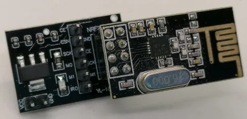 Für die Ansteuerung des nRFL01 Modules am Microcontroller benötigst du zusätzlich ein Regler Modul welches dem Set bei liegt.