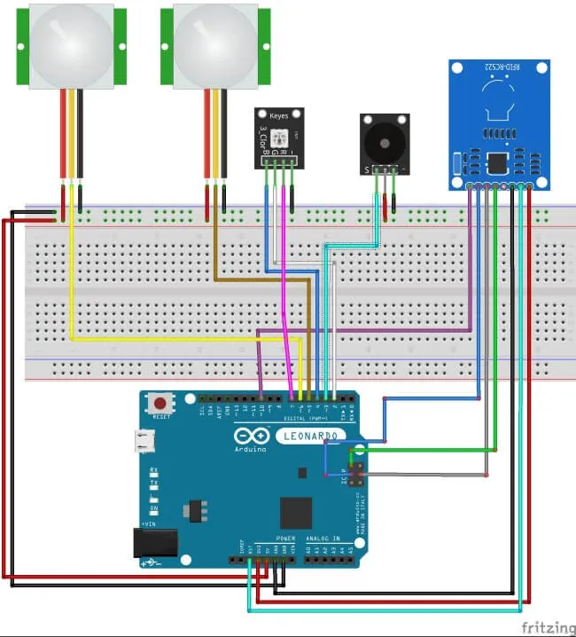 Das Projekt entstand aus einem Kommentar zum Beitrag Arduino Projekt: Alarmanlage mit RFID Steuerung der Leser hatte mich hier gefragt wie denn ein PIR Sensor in die Schaltung integriert werden kann. Dieses habe ich zum Anlass genommen das Projekt neu aufzubauen und zwei PIR Sensoren zu integrieren.