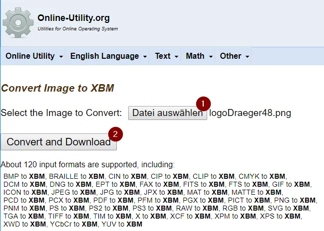 Um ein Bild in das XBM Format umzuwandeln, muss man nicht unbedingt spezielle Software erwerben, man kann dieses bequem online mit dem Tool https://www.online-utility.org/image/convert/to/XBM erledigt. Hier lädt man das gewünschte Bild hoch und kann die XBM Datei herunterladen.