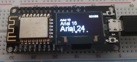 Als Erstes ein Klassiker „Hello World!“. Für die Darstellung von Text kann man zwischen 3 Schriftgrößen wählen.