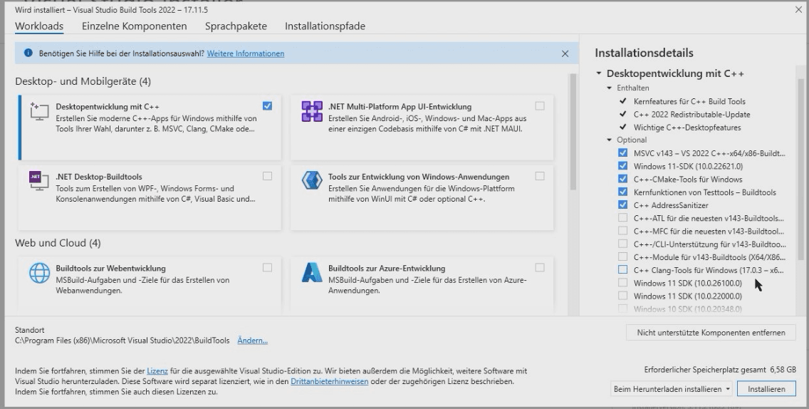 Installieren der Microsoft Build Tools für C++