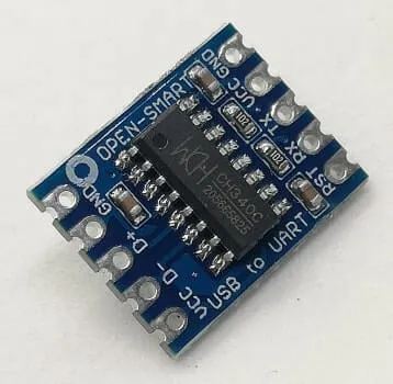 Die kleine Platine mit dem CH340G Chip hat eine kreisförmige Markierung an der linken oberen Ecke, genau so eine Markierung finden wir auf der Platine des Arduino UNO Bausatzes wieder, hier hat uns der Hersteller es einfach gemacht, wir müssen somit „nur“ darauf achten das diese beiden Markierungen übereinander liegen.