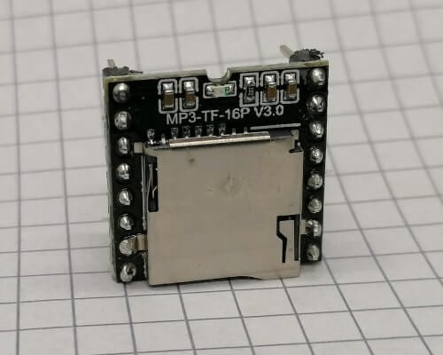 Damit du jedoch MP3 Dateien wiedergeben kannst, benötigst du noch eine SD-Karte* & ein kleinen Lautsprecher* mit Lötfäden.
