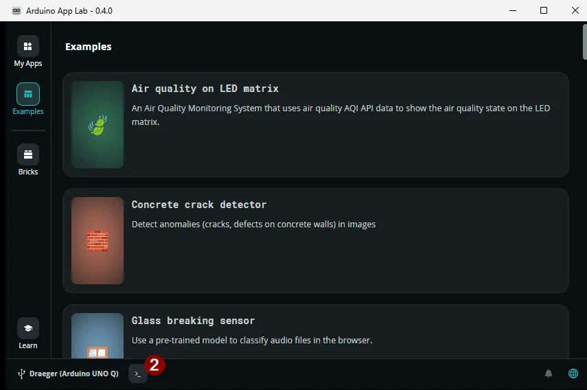 Arduino App Lab - Zugriff auf den Arduino UNO Q via Shell - Step3