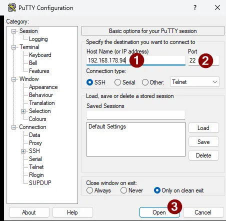 Variante 2: Zugriff über ein externes SSH-Tool (z. B. PuTTY)