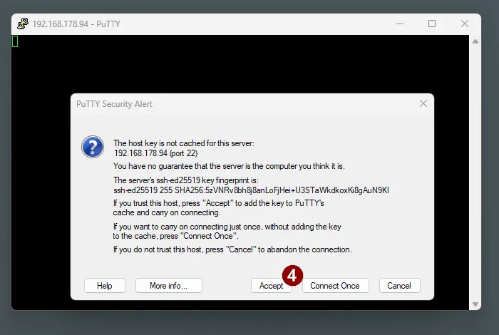 Alternativ kannst du dich mit einem klassischen SSH-Client verbinden, z. B.: