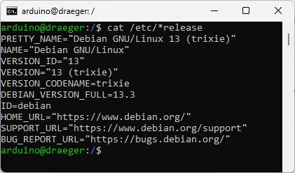 Auf meinem Board läuft aktuell die Debian-Version: Debian Linux „Trixie“ mit Buil-Version 20251229-457.