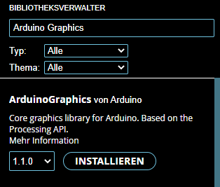 Die Bibliothek findest du mit dem Suchbegriff „Arduino Graphics“ im Bibliotheksverwalter.