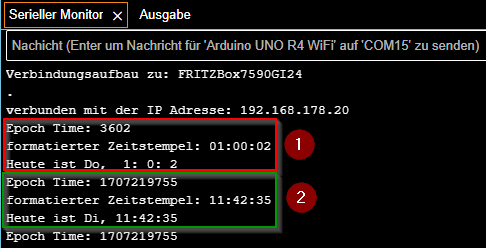 Wenn du das kleine Beispiel ausführst, dann kann es besonders am Anfang vorkommen, dass kein vollständiger / gültiger Zeitstempel empfangen wird (1). Hier hilft es eine kleine Abfrage einzubauen, ob der Wert größer als 1707219755 ist. (Wir können ja schließlich nicht in die Zeit zurückreisen.)