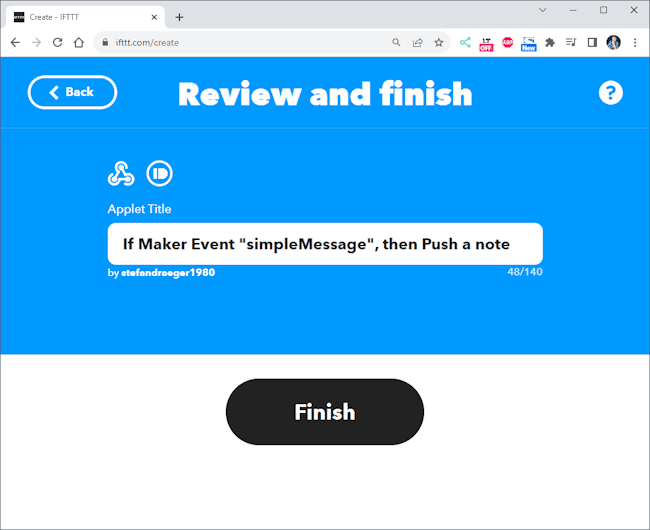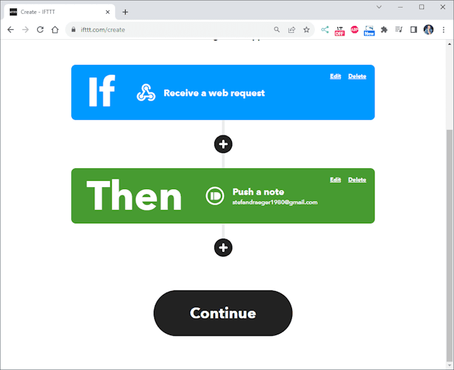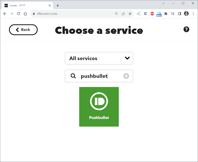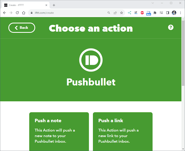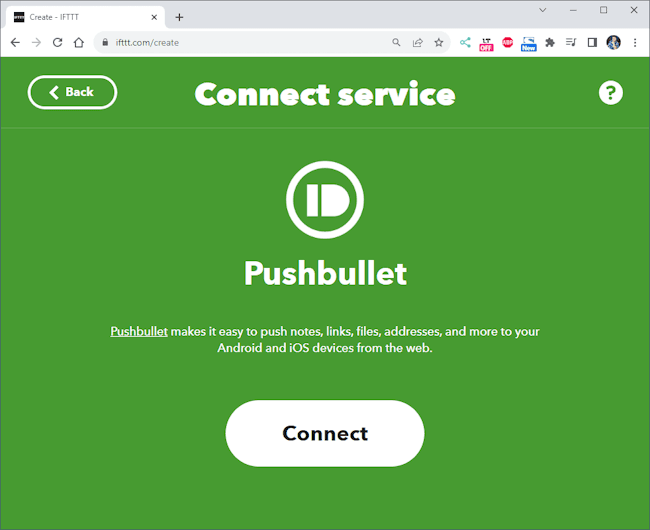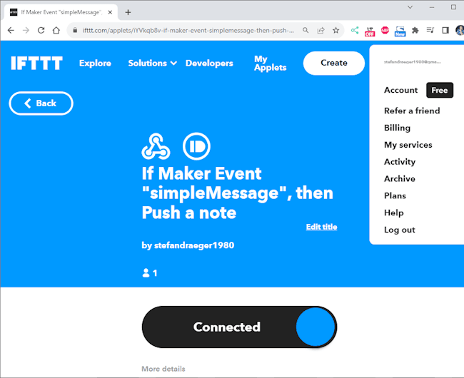 - Einrichten eines Applets in IFTTT für Pushbullet
