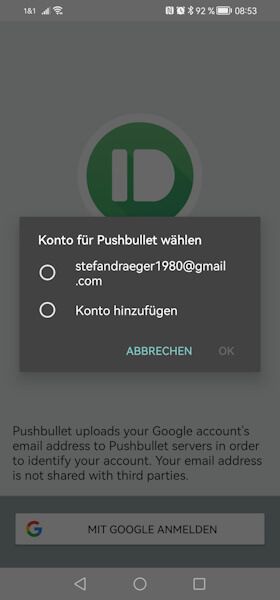 Bevor wir den Service für Pushbullet in IFTTT verbinden können, müssen wir uns erst einmal ein Konto unter https://www.pushbullet.com/ einrichten. Hier kannst du die mit einem bestehenden Google oder Facebook sehr schnell verbinden. (In meinem Fall habe ich dieses mit meinem Google-Konto getan.)